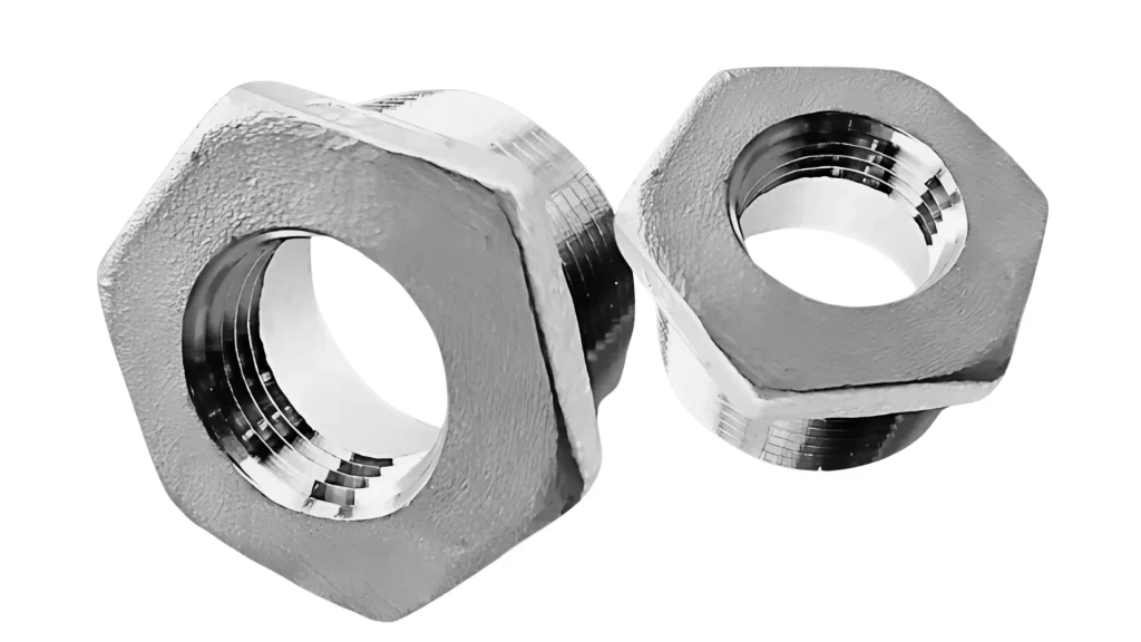 A su vez, las reducciones bushing permiten la combinación de una conexión del tipo “Hembra” (rosca externa) y una del tipo “Macho” (rosca interna). Además, se mantiene la concentricidad del sistema de conducción, es decir, no modifica su trayectoria. Su forma hexagonal, permite una sujección más firme ya que es posible el uso de herramientas para dismuir la probabilidad de fugas.
