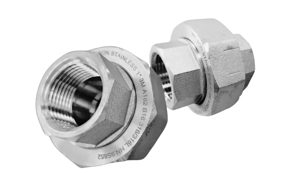Las tuercas unión que se entregan por medio de forja, ASTM A 182, es la única conexión que se va a dimensionar por medio de los estándares MSS SP-83. De aquí se extraen sus medidas, longitudes, espesores y tolerancias. Sean con bordes roscados o tipo caja soldable.